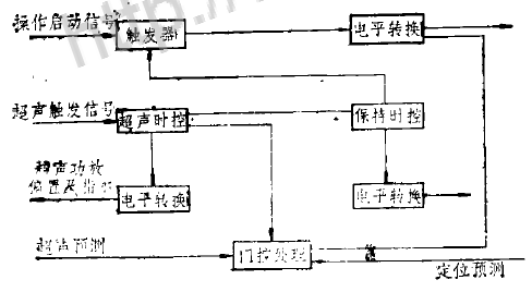 超聲波焊接機(jī)程序控制線路原理方框圖6 操作信號(hào)經(jīng)觸發(fā)器后, 使觸發(fā)器為“ 狀態(tài), 通過(guò)電平轉(zhuǎn)換送出一個(gè)降信號(hào), 使換能器下降至焊接件端面, 當(dāng)焊件接觸到焊頭時(shí),另一個(gè)超聲觸發(fā)信號(hào)送到超聲時(shí)控電路此信號(hào)由機(jī)架微動(dòng)開(kāi)關(guān)送來(lái), 經(jīng)電平轉(zhuǎn)換后控制功放偏置, 以起動(dòng)功放電路產(chǎn)生振蕩, 又將超聲受控時(shí)間結(jié)束信號(hào)送入保持時(shí)控電路, 這主要是焊頭在一信號(hào)停止后繼續(xù)保持在焊件上, 以待焊件冷卻。當(dāng)保持受控時(shí)間結(jié)束后, 信號(hào)送到觸發(fā)器, 使觸發(fā)器為“ 0”狀態(tài), 換能器回升到原處, 完成一次焊接過(guò)程。